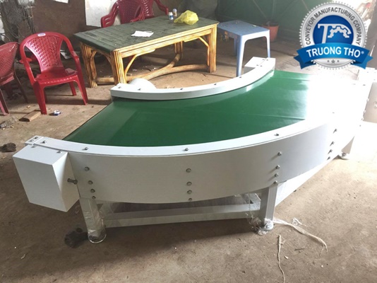 Băng tải góc cong PVC đùng để chuyển hướng sản phẩm mang thương hiệu Băng tải Trường Thọ